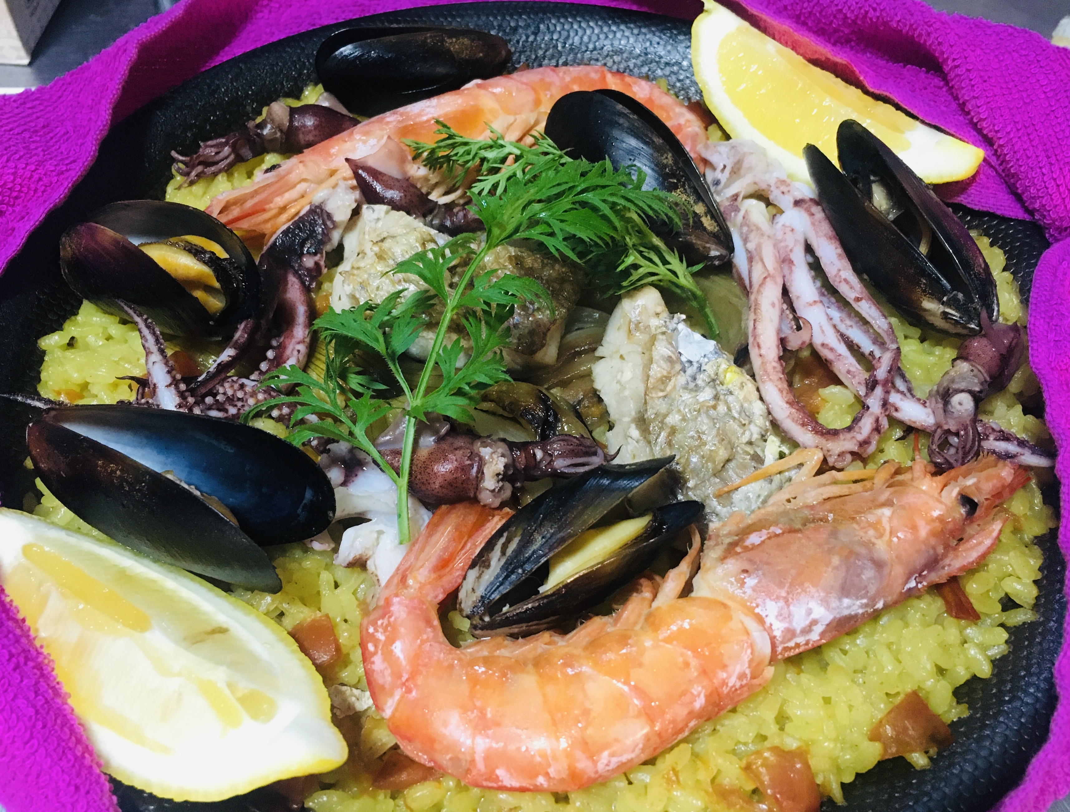 スタンプが5個貯まったら次回のご来店時 女神之なほりあひ特製パエリアのサービスがあります。パエリアはお時間がかかりますので telにてご連絡を前もってお願い致します。